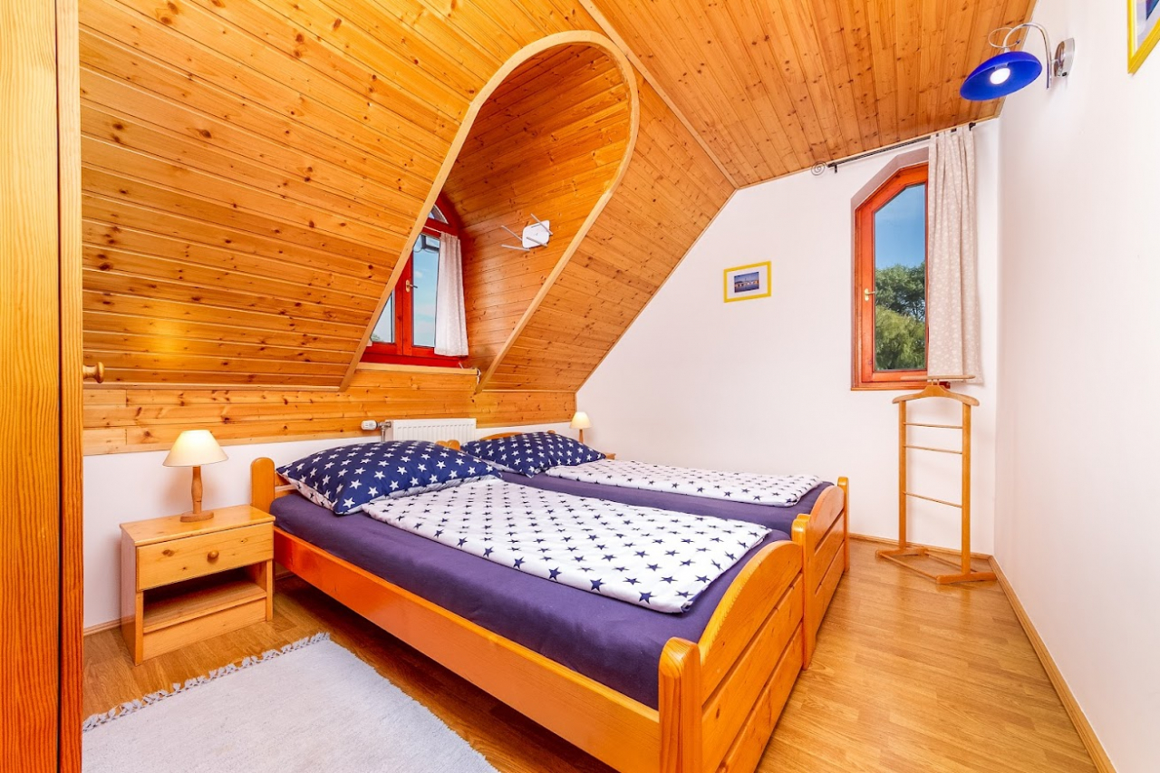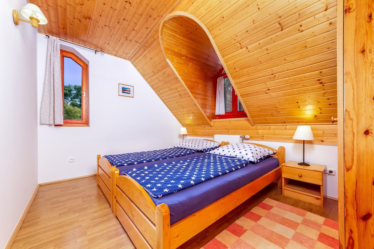 Emelet: Zuhanyzó/WC, három kétágyas szoba, balkon.