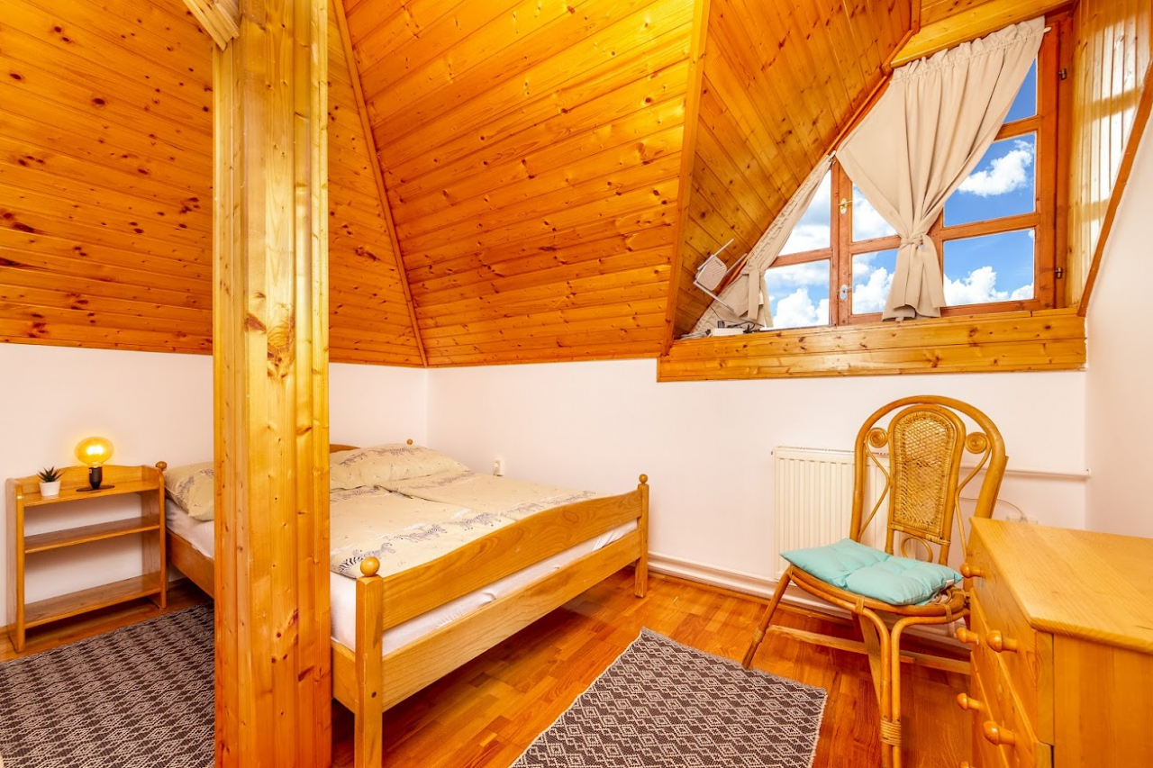 Emelet: Előtér, zuhanyzó/WC, három kétágyas szoba.