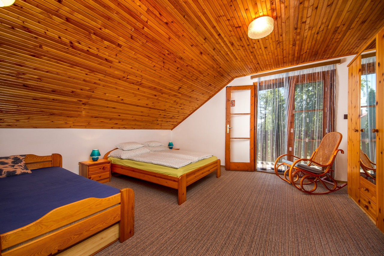 Emelet: Egy kétágyas szoba, egy háromágyas szoba, WC, balkon.