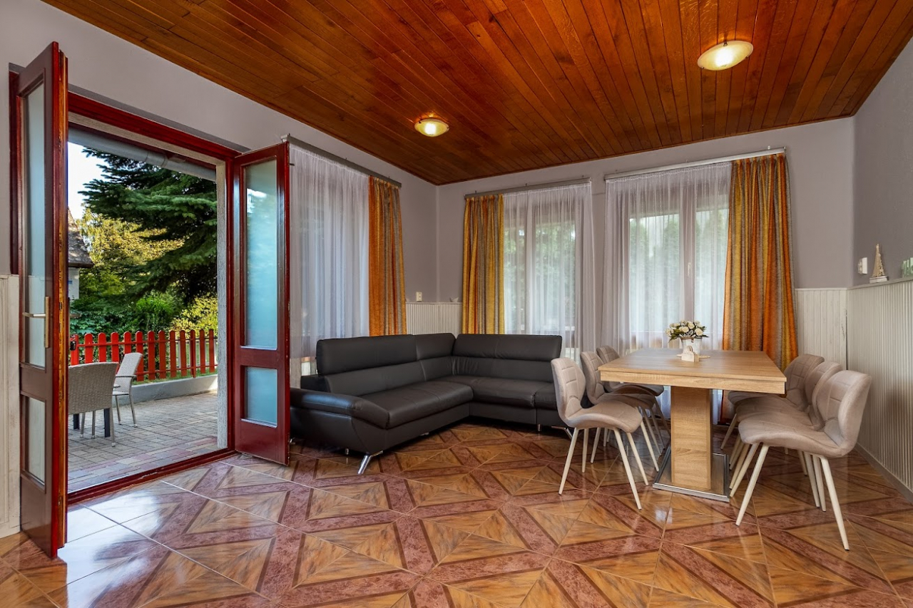 Információk: Önálló nyaraló 6 főre központi helyen. Kert, kerti bútor, kerti grill,etetőszék, gyerek utazóágy, autóbeálló, TV. Vasúti sín kb. 30 m.